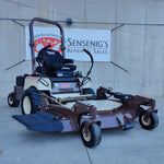Delivering powerful, high-tech performance and unparalleled fuel economy, the Grasshopper Model 727T EFI riding lawn mower with zero-turn maneuverability features an Electronic Fuel Injection (EFI) engine that maximizes fuel efficiency. The PowerFold® deck lift/electric height adjustment of the out-front deck raises the deck to a near vertical position for easy cleaning. The deck can be replaced with several grounds-maintenance implements.